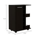 Bar, con espacio para ubicar botellas de vino, 1 puerta con manija, 1 entrepaño móvil y rodachinas.
