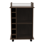 Bar, con 1 puerta batiente de vidrio, rodachines, espacio para porta botellas y copas.