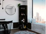 Bar Esquinero, con 4 de entrepaños y, 2 puertas batientes, porta copas y amplio espacio para almacenar botellas.