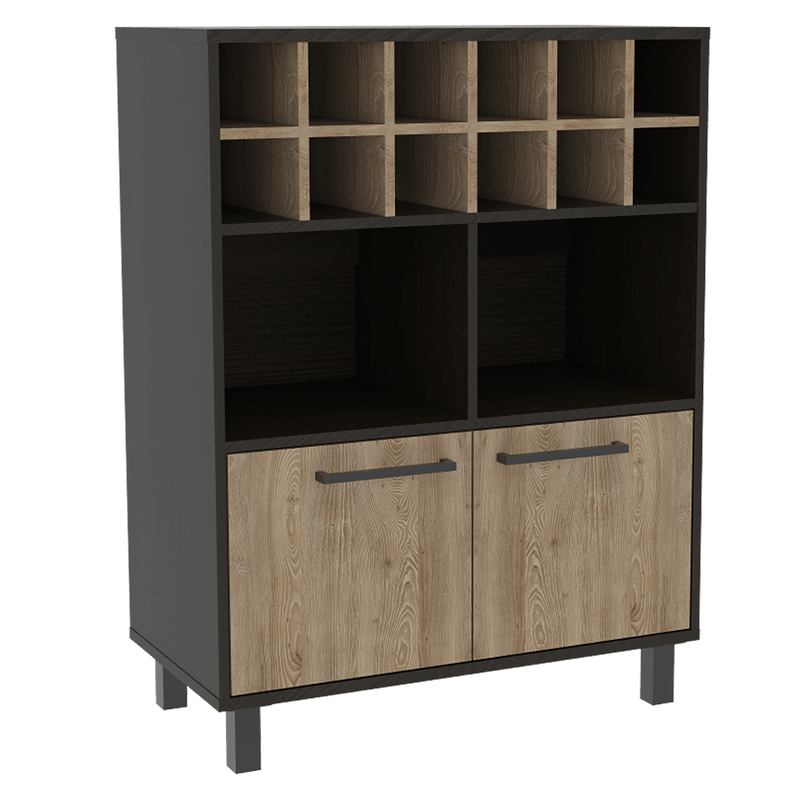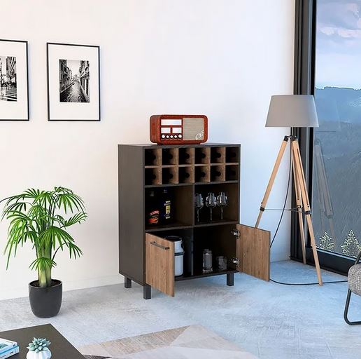 Bar, con espacio para Botella de vino y copas, diseño moderno con combinación de colores, 2 puertas, patas y manijas metálicas