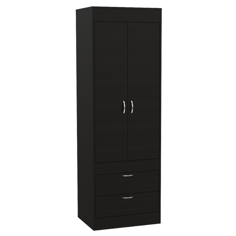 Closet Agata, Wengue, con Dos Cajones y Tubo Cromado Para Colgar Ropa