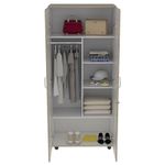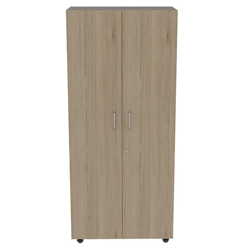 Closet, con 2 puertas abatibles, maletero, tubo cromado para colgar ropa, rodachinas para su fácil desplazamiento, compartimiento inferior y superior para organizar ropa, zapatos u accesorios. Incluye cerradura para puerta y pasador.