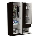 Closet Zoa, Wengue y Blanco, con Cuatro Puertas Batientes, Un Cajón y Un Tubo Para Colgar Ropa ZF