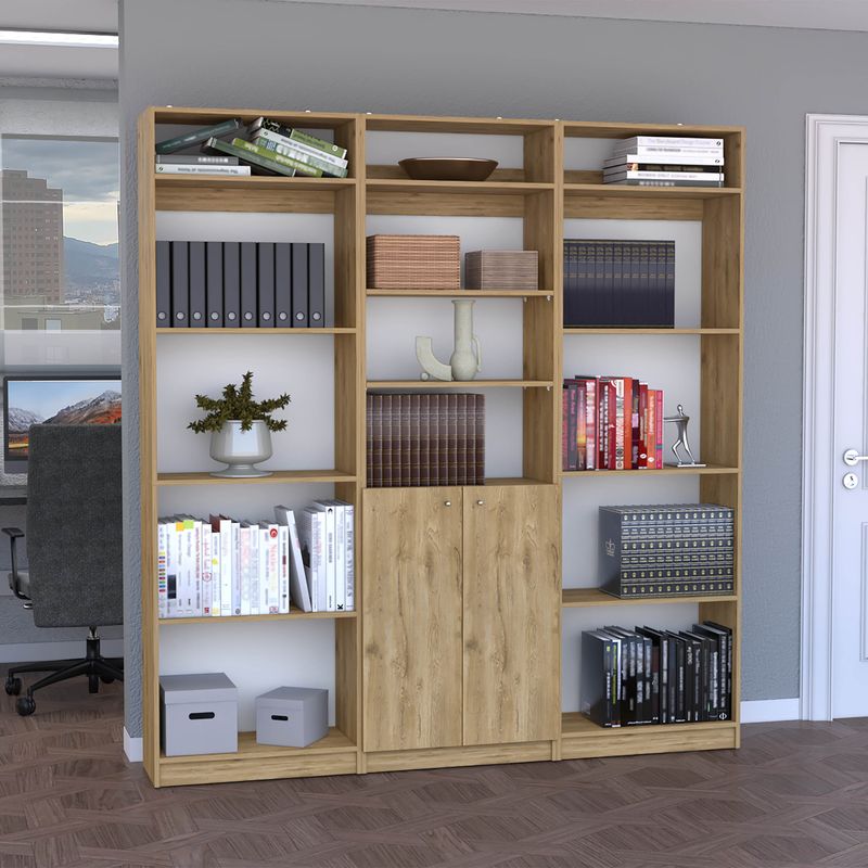 Combo de Bibliotecas Home, Macadamia, Incluye Tres Bibliotecas y Tres Complementos