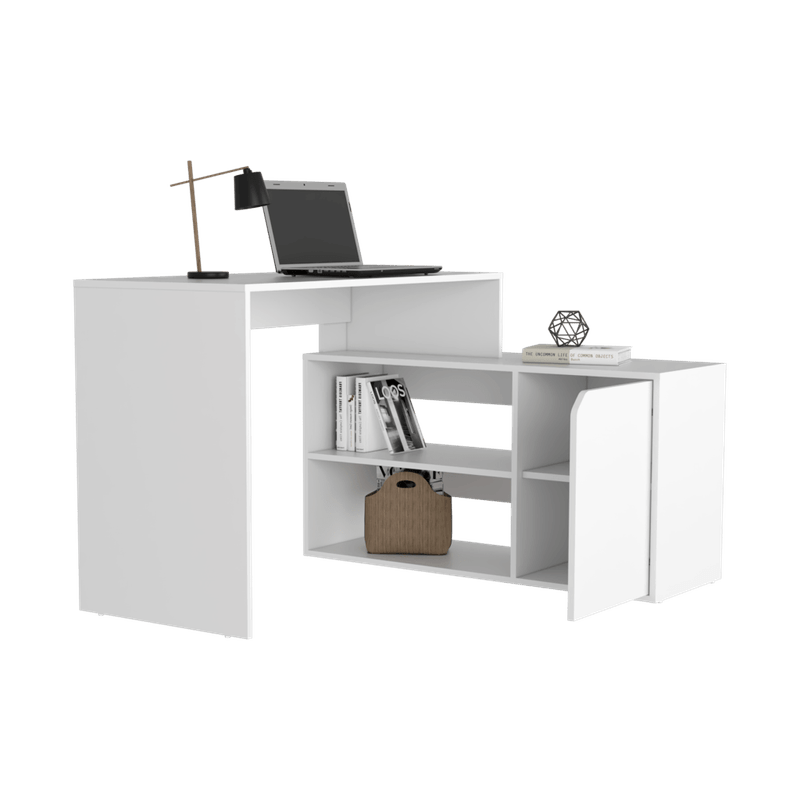 Escritorio, con diseño moderno con múltiples entrepaños para ubicar objetos y 1 puerta abatible.