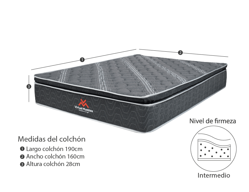 Colchón: Alto: 28 cm Largo: 190 cm Ancho: 160 cm