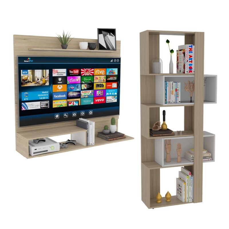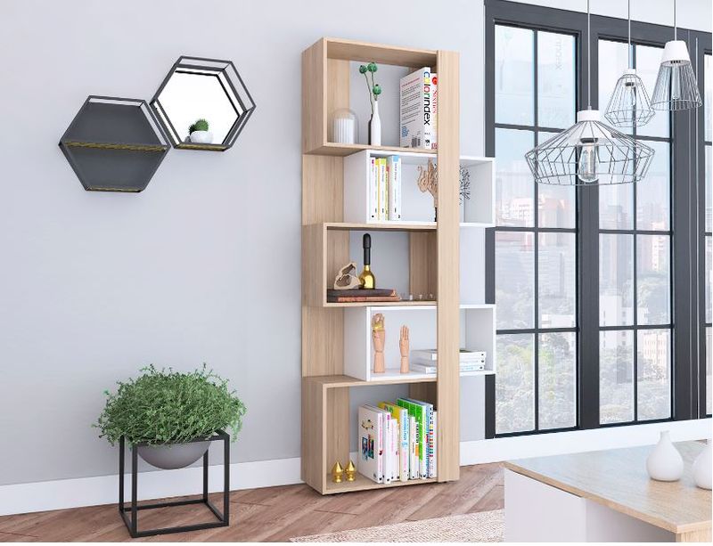 Biblioteca, con excelente capacidad de almacenamiento, dos módulos flotantes para ubicar dentro o fuera, fácil Instalación e incluye manual de armado.