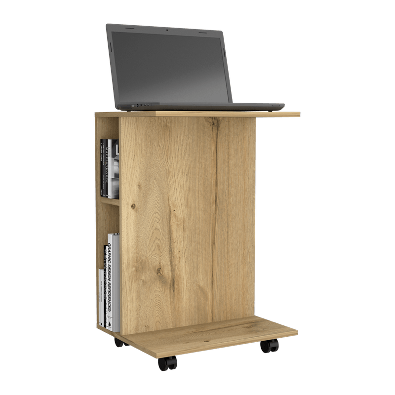 Escritorio Portable, con espacio para computadora portátil, rodachinas con freno y espacio para colocar libros y objetos decorativos.