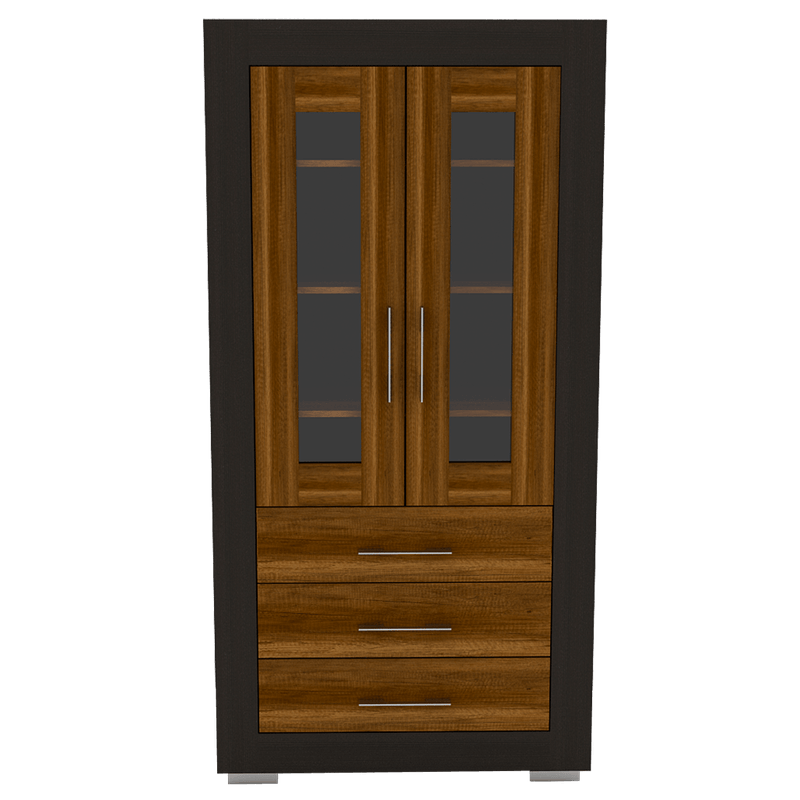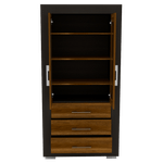 Estantería Multiusos, con 2 puertas batientes, 3 cajones, 4 entrepaños y para ubicar objetos.