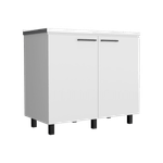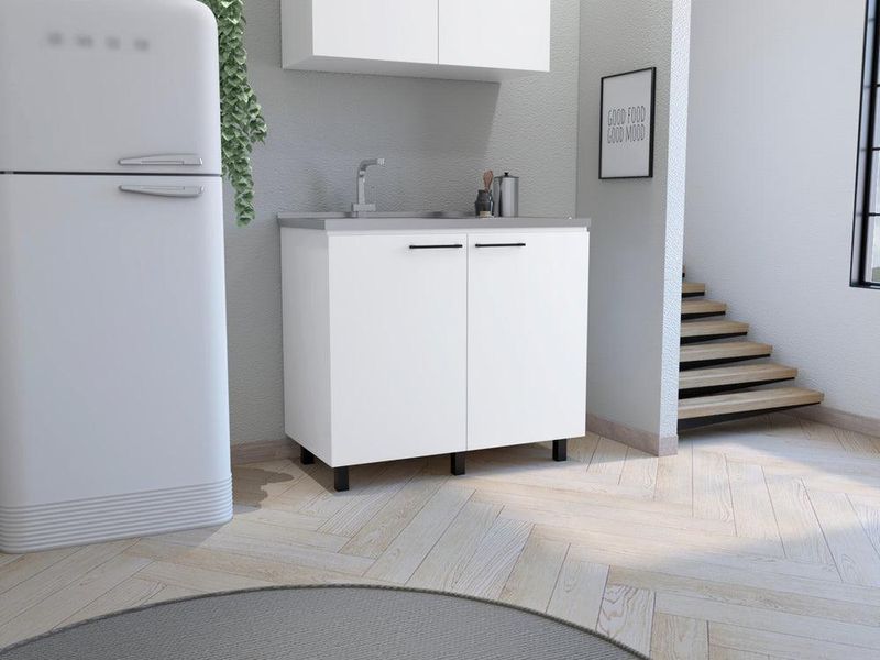 Gabinete Inferior, con amplio espacio para guardar utensilios de cocina, 2 puertas batientes, manijas metalicas. Incluye meson derecho.