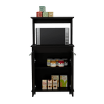 Módulo Microondas, con 2 puertas abatibles, rodachines plásticos, compartimiento inferior para alimentos, utensilios de cocina y electrodomésticos.